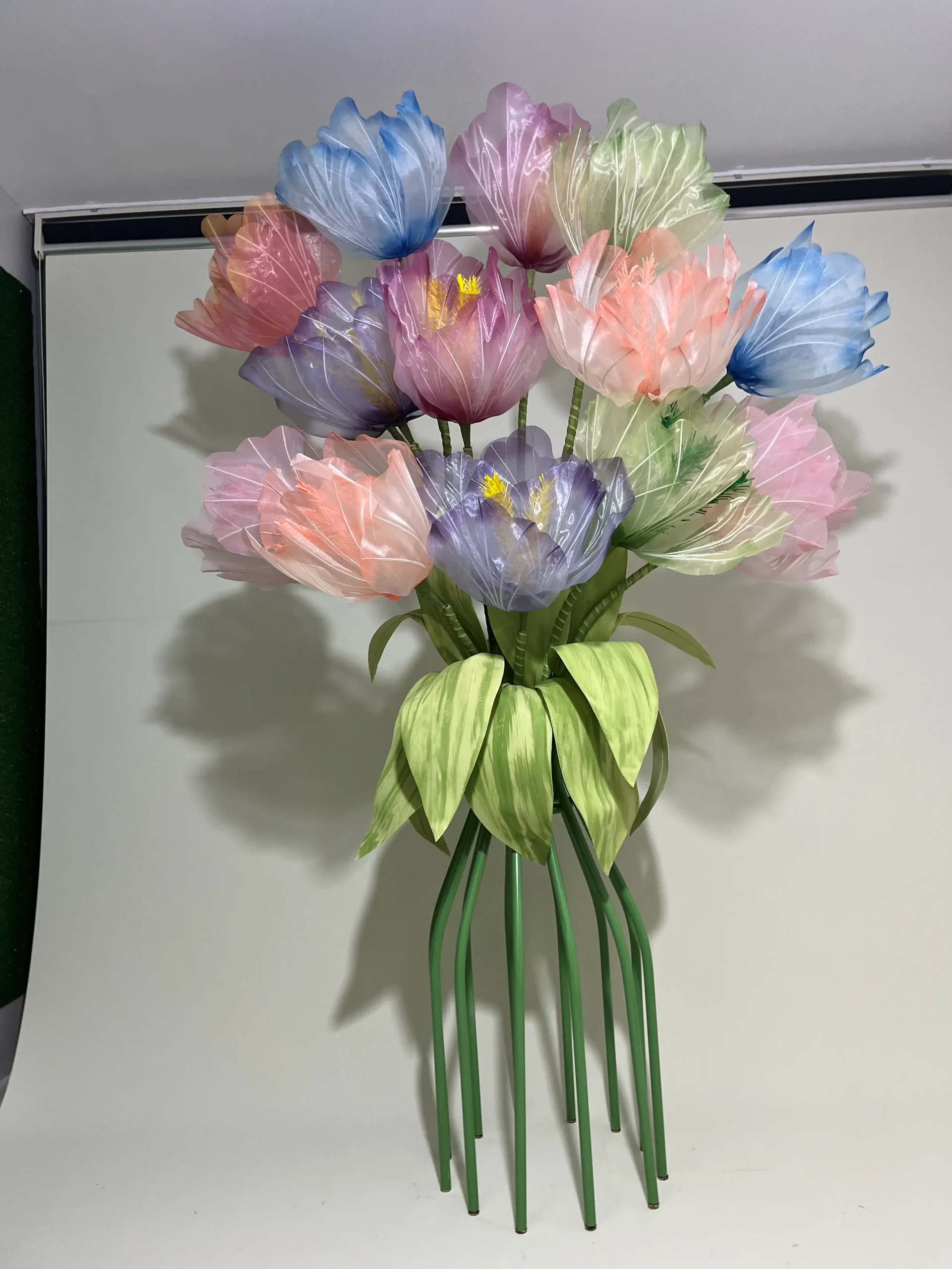 Lale Buket, zarif ve etkileyici tasarımıyla özel günlerinize şıklık katar. Organze tülden özenle yapılmıştır. Renk seçenekleri tamamen sizin tercihinize göre özelleştirilebilir, böylece her etkinliğe veya mekâna uyum sağlayacak şekilde tasarlanabilir.Hem zarif hem de gösterişli olan bu lale buket, düğünlerden nişanlara, özel davetlerden gala gecelerine kadar her türlü organizasyonda göz alıcı bir detay olarak öne çıkar. Fiyatı 13,000₺ olup, her biri özenle hazırlanmış bu zarif çiçekler, etkinliklerinize unutulmaz bir dokunuş katacaktır.